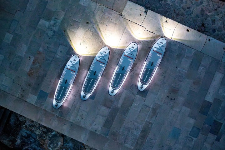 The Aqua Marina Glow Inflatable Paddle Board is one of our most fun and unique inflatable paddle boards with its integrated LED lighting system. At 10’4″ long and a 31″ wide deck, it provides stability and comfort while supporting over 300 lb, yet weighs only 18 lb. The standout feature is the customizable LED lighting that illuminates the water in various colors and modes. Despite its advanced features, the board is easily transportable in an eco-friendly backpack made from recycled plastic bottles, measuring 34″ x 17″ x 8.25″. If you are looking for a laser light show on the water, this is your ride!